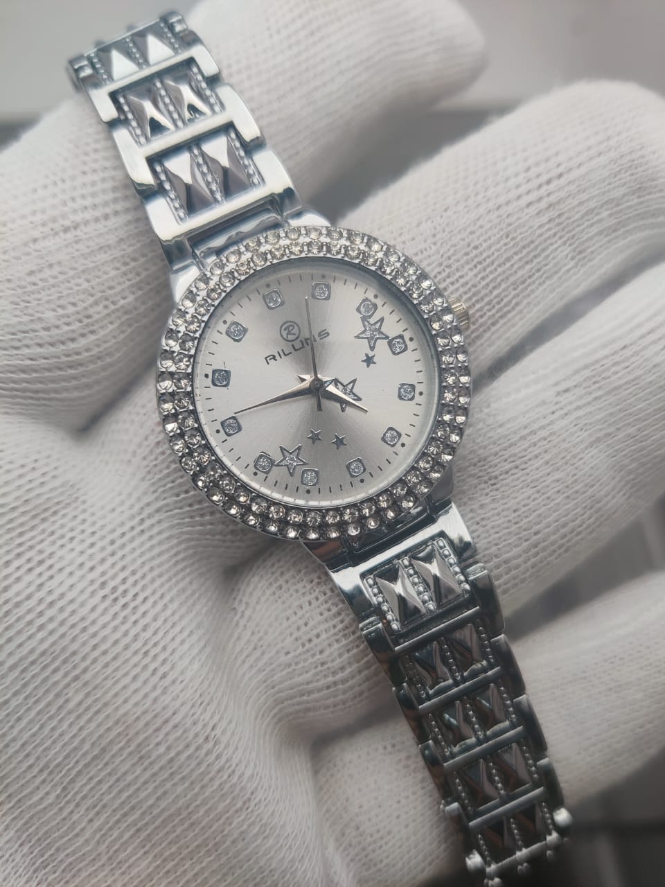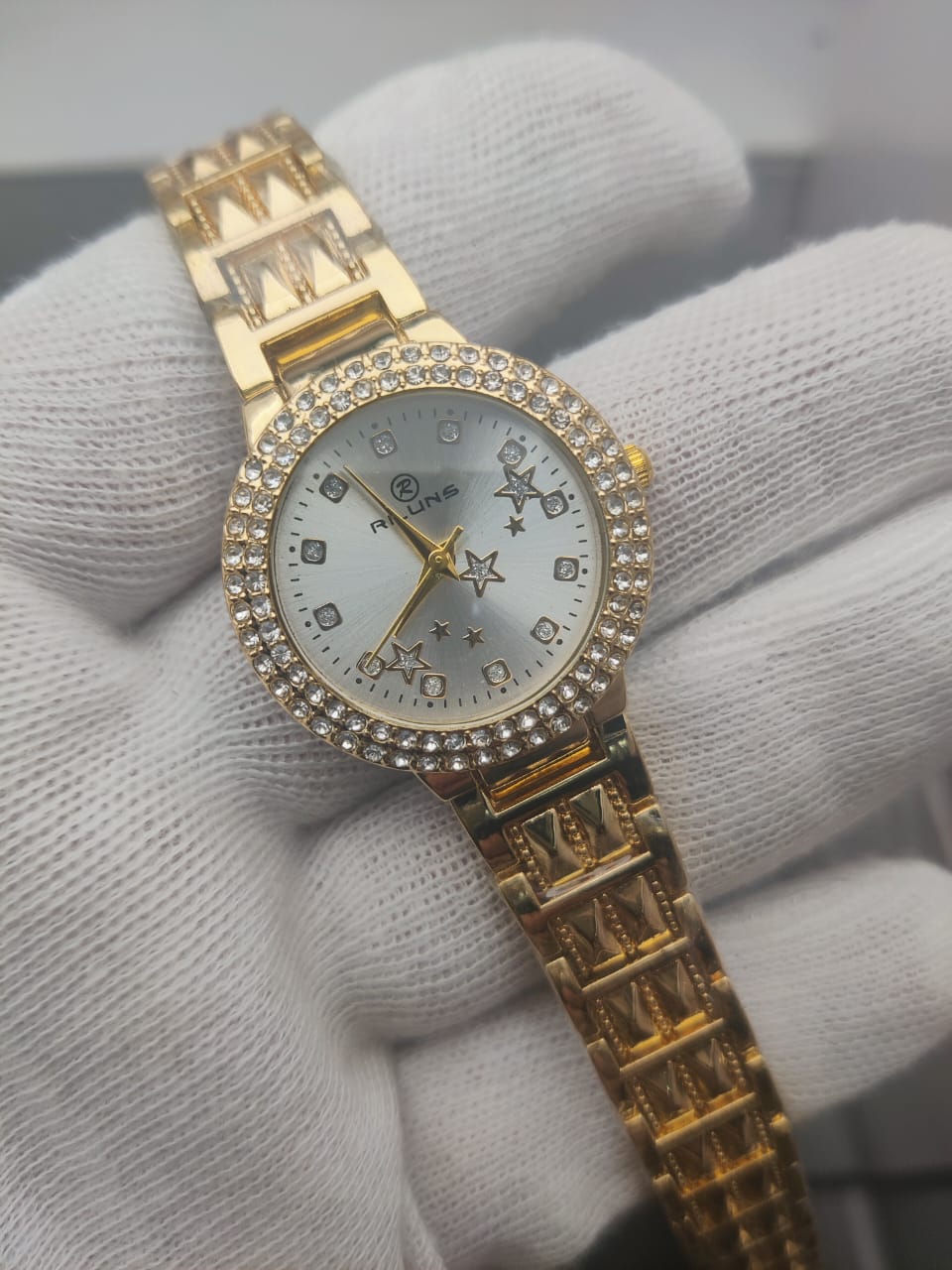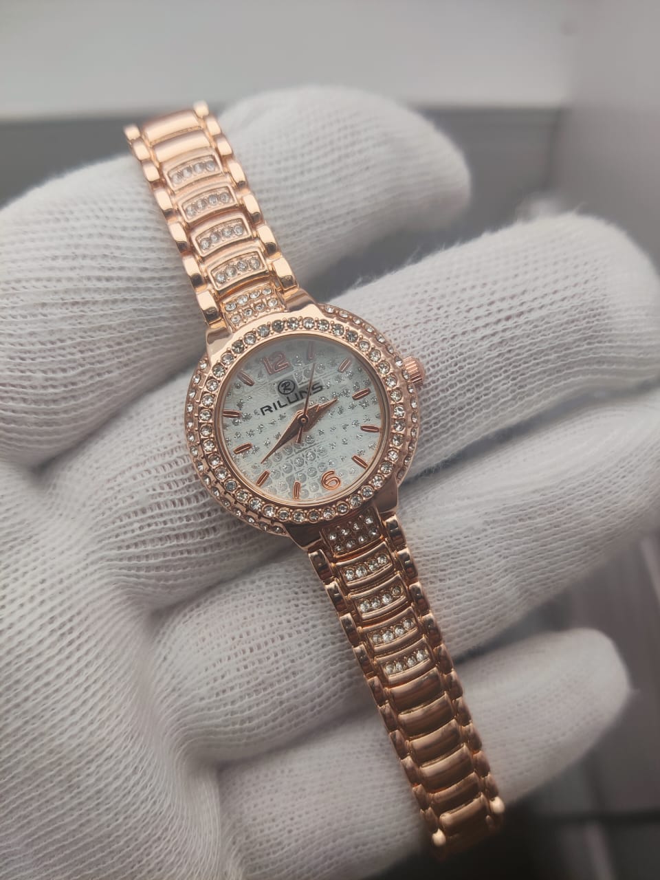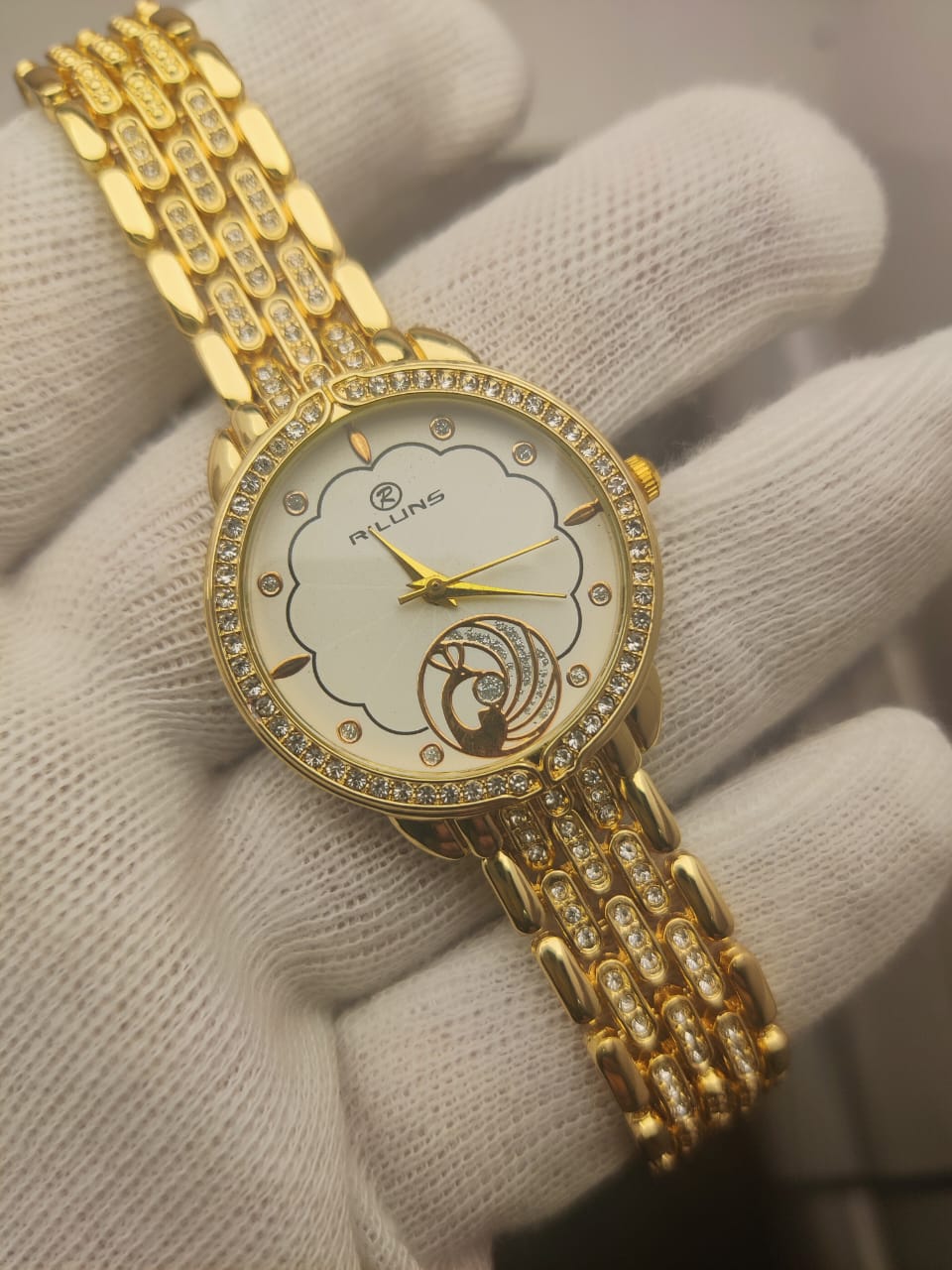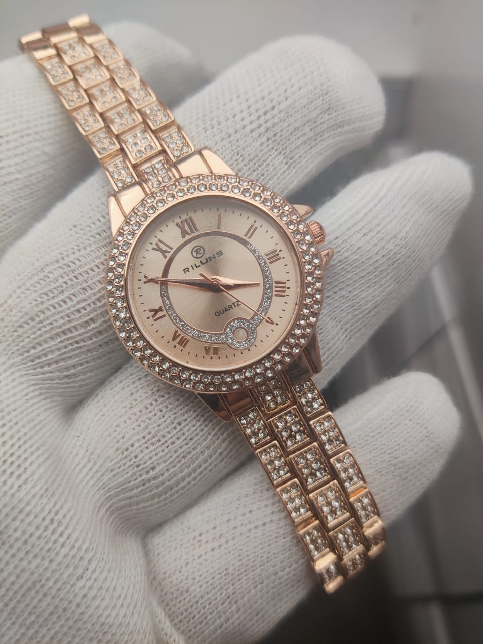 With Riluns watches, elegance meets everyday wearability. This crystal-studded gold wristwatch is not just a timekeeper but also a statement piece that adds sophistication to any outfit.