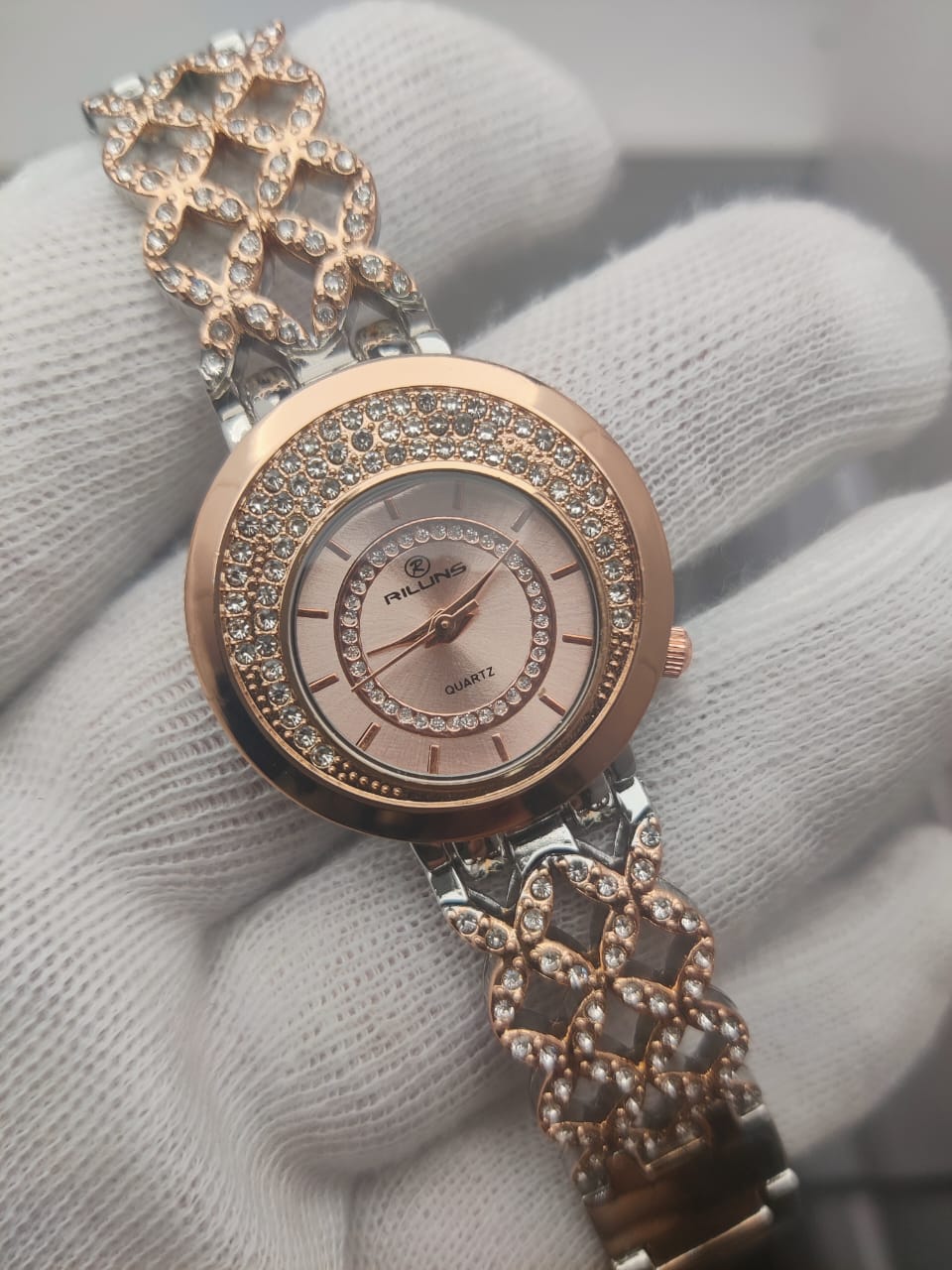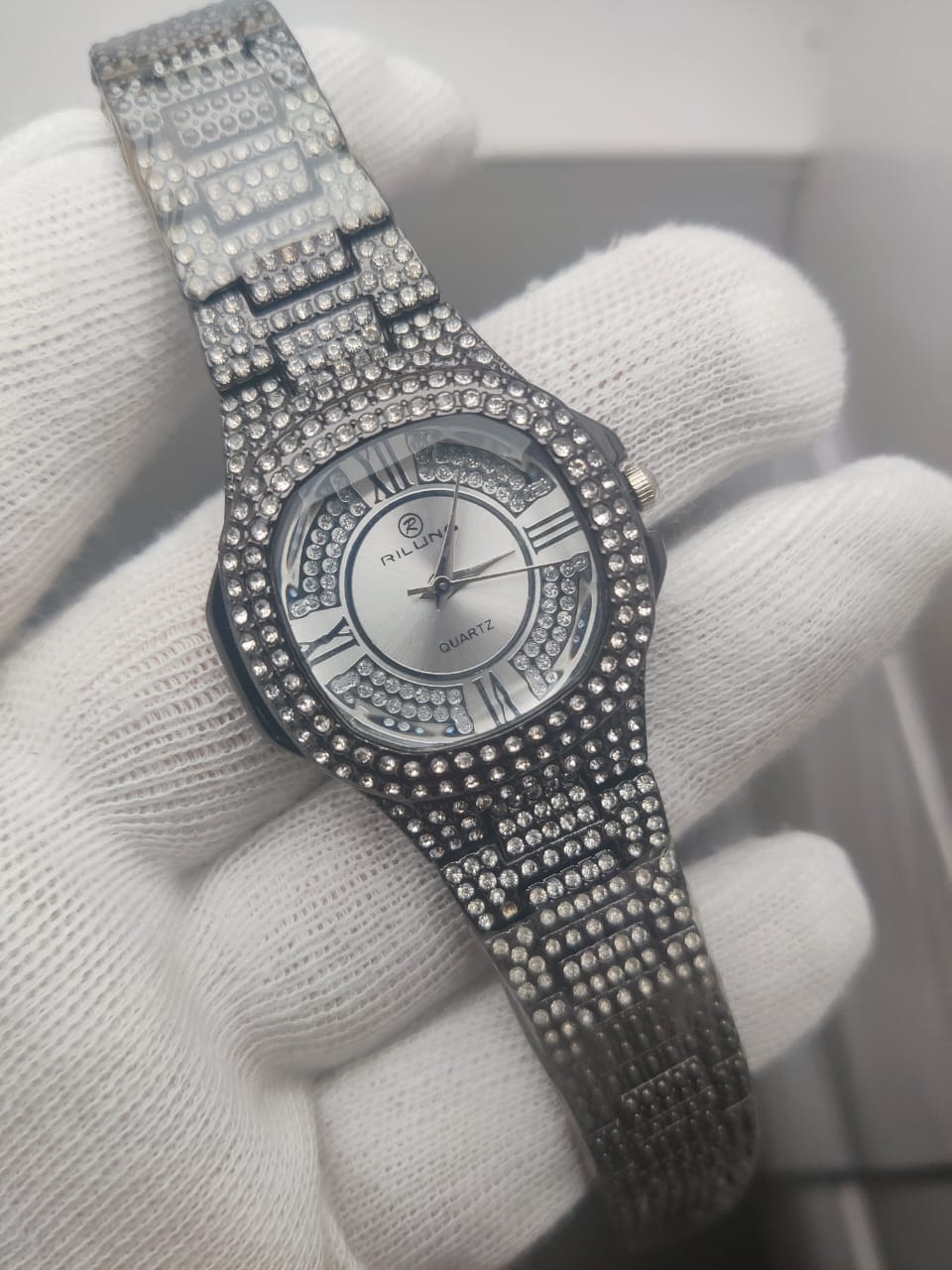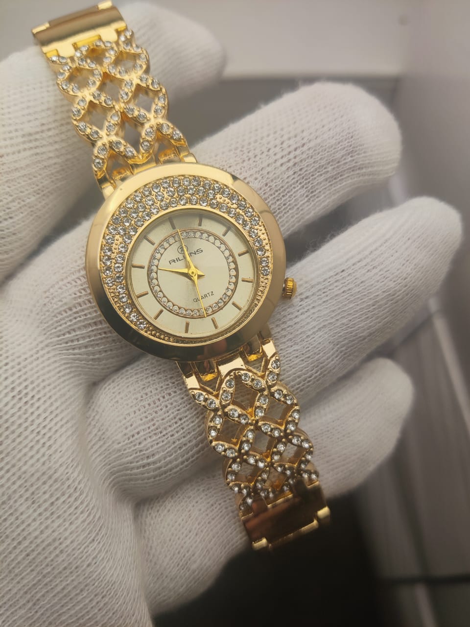 With Riluns watches, elegance meets everyday wearability. This crystal-studded gold wristwatch is not just a timekeeper but also a statement piece that adds sophistication to any outfit.