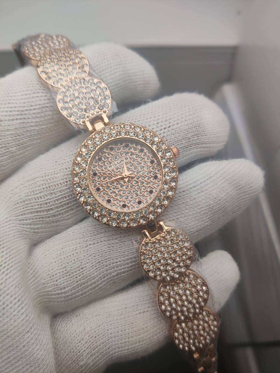 💎 Crystal Embellishments – Sparkling stones on both the dial and bracelet for extra shine.